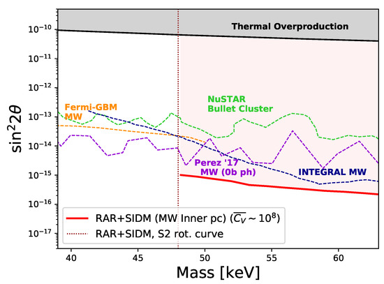 - Yunis, R.; Argüelles, C.R.; Mavromatos, N.E.; Moliné, A.; Krut, A.; Carinci, M.; Rueda, J.A.; Ruffini, R. Galactic center constraints on self-interacting sterile neutrinos from fermionic dark matter (“ino”) models. Phys. Dark Universe 2020, 30, 100699. [Google Scholar] [CrossRef]