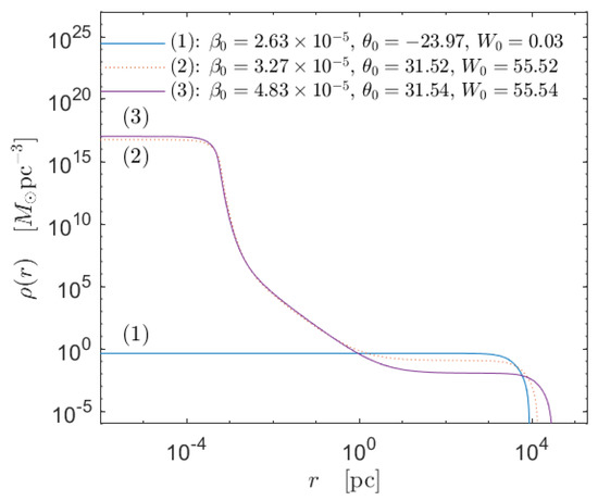 - Merafina, M.; Ruffini, R. Systems of selfgravitating classical particles with a cutoff in their distribution function. Astron. Astrophys. 1989, 221, 4–19. [Google Scholar]