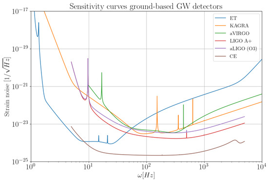 - Moore, C.J.; Cole, R.H.; Berry, C.P.L. Gravitational-wave sensitivity curves. Class. Quantum Gravity 2014, 32, 015014. [Google Scholar] [CrossRef]