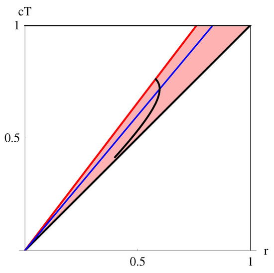 The trajectory of such movement for case , is represented by the curve in Figure 2 in coordinates T, r (see (19)).