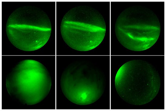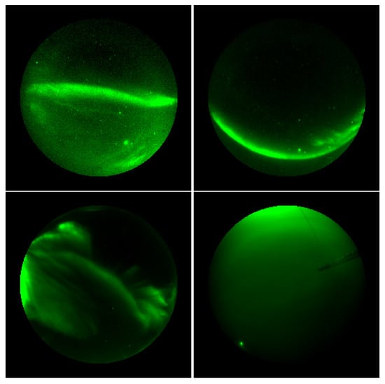 An aurora is an illustrative embodiment of the coupling between the solar wind and the magnetosphere [1]. It is a light-excitation phenomenon that occurs when high-energy charged particles moving along the magnetic field line settle to the height of the polar ionosphere to excite atmospheric particles. Some high-energy charged particles [2] are generated by the magneto-dynamic process of the solar wind–magnetosphere interaction [3], and the solar wind directly carries others [4]. Observing the morphology of auroras can give sufficient information about the magnetosphere and solar–terrestrial electromagnetic activities in space, which is beneficial for an in-depth understanding of the way and extent of solar activities affecting the Earth, and is also of great significance for mastering the changing laws of space weather processes [5]. The variable auroral morphology is the reaction of a particular dynamic process of the magnetosphere and ionosphere to the atmosphere.