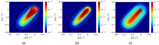 Figure 6 shows the images of PKS 1502+106 observed in VLA, MERLIN and VLBA [5,6]. Figure 6a,b is transformed by using the original beams [5]; Figure 6c is transformed by using the restored beams.