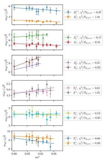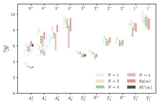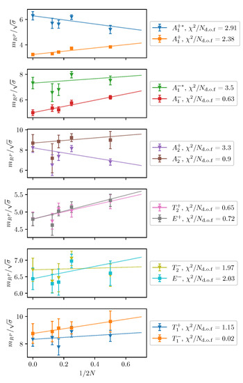 - Athenodorou, A.; Teper, M. SU(N) gauge theories in 2+1 dimensions: Glueball spectra and k-string tensions. J. High Energy Phys. 2017, 2, 15. [Google Scholar] [CrossRef]