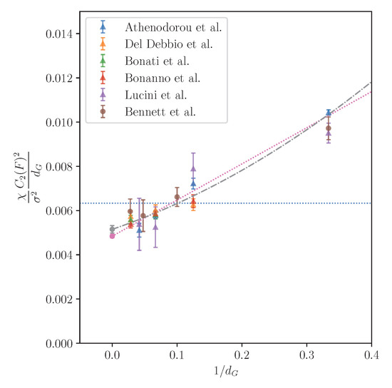 - Debbio, L.D.; Patella, A.; Pica, C. Higher representations on the lattice: Numerical simulations. SU(2) with adjoint fermions. Phys. Rev. D 2010, 81, 094503. [Google Scholar] [CrossRef]