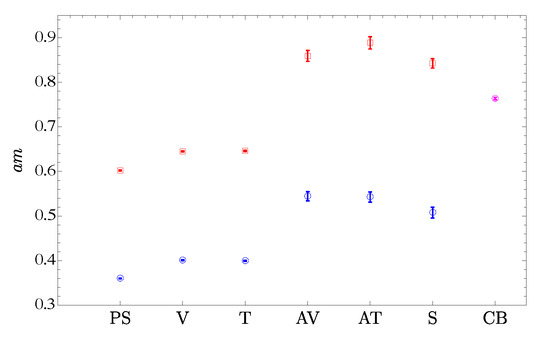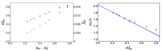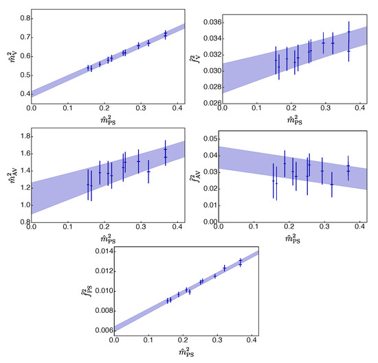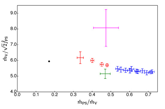 - Jansen, K. et al. [ETM]. Meson masses and decay constants from unquenched lattice QCD. Phys. Rev. D 2009, 80, 054510. [Google Scholar] [CrossRef]