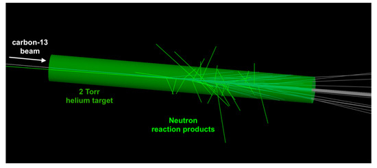 Neutron production in a helium cell, after the energy loss of an incident 13C beam and the resulting 13C(α,n) reaction.