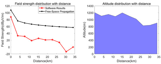 | Distance (km) | Altitude (m) | Field Strength (dB V/m) | Free-Space Propagation (dB V/m) |