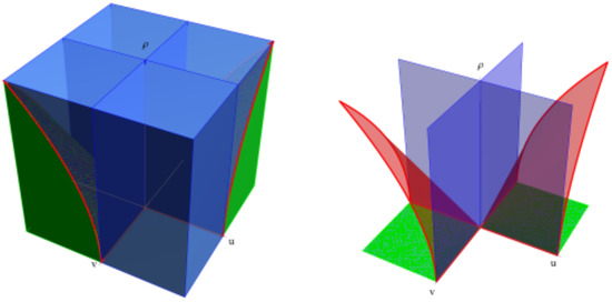 To study this function we will analyse the causal character of the level 3-surfaces according to the values of and . In the following analysis we must not forget that, although the function f is defined for all v, our field vanishes at .