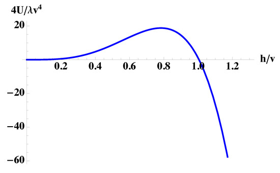 For the regularization scale , in (51), the VEV of the Higgs field can be chosen as v since this is the scale where the running SM parameters still can be associated with the experimentally observed values so that the Higgs potential is to be well approximated by its classical form. It is known that the leading terms of the one-loop corrections (corresponding to the t quark, W and Z bosons, Higgs and Goldstone bosons, respectively) are [5,6,7,8,9],