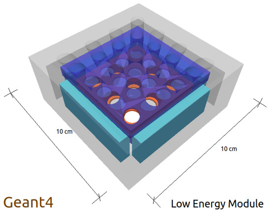 Visualization of the low-energy module (LEM) geometry developed with the GEANT4 framework [24].