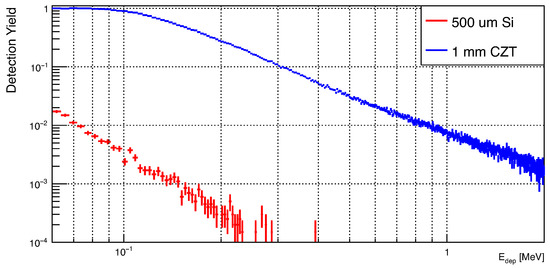 Improvement of detection yield for -rays thanks to CZT sensors. The legend refers to the material and the thickness considered for the E detector.