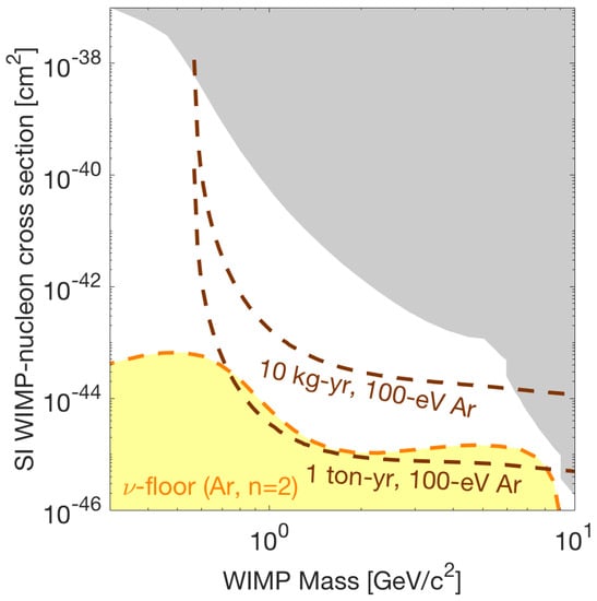 26. Akerib, D.S.; Cushman, P.B.; Dahl, C.E.; Ebadi, R.; Fan, A.; Gaitskell, R.J.; Galbiati, C.; Giovanetti, G.K.; Gelmini, G.B.; Grandi, L.; et al. Snowmass 2021 Cosmic Frontier Dark Matter Direct Detection to the Neutrino Fog. arXiv 2022, arXiv:2203.08084. [Google Scholar]