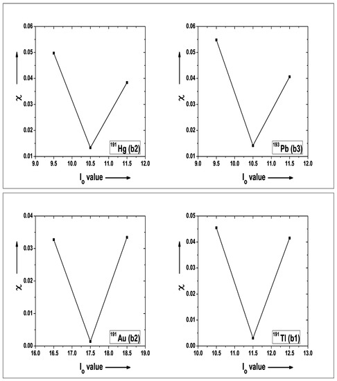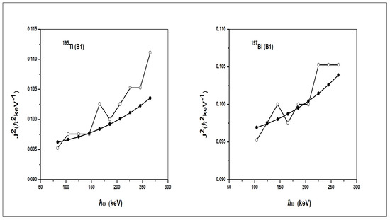 (iii) In Table 4, we have presented the remaining five pairs of SDIBs in which the moment of inertia and experimental transition energies have good agreement with each other within the pair, but the band-head spins are not identical for the transition energies. For example, in the case of Au(b2), the band-head spin is at , while in Tl(b1) the band-head spin is at . There are two different band-head spin values, but if we compare the energies of these two bands, the energy at spin is 398 keV tentatively matches with the energy of 399 keV at spin , as shown in Figure 1. Thus, these are the cases where the spin values are not identical within the pair and are either increasing or decreasing by one unit; however, they can be considered identical on the basis of transition energies and moment of inertia.