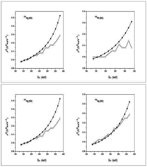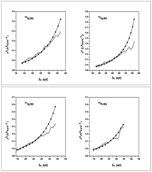 - France, G.D.; Baktash, C.; Haas, B.; Nazarewicz, W. Rotational inertia of superdeformed nuclei: Intruder orbitals, pairing, and identical bands. Phys. Rev. C 1996, 53, R1070(R). [Google Scholar]