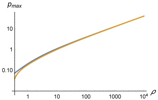 If one supplements Equation (10) by the “equation of state”, which connects the maximal pressure with the density, then it is possible to determine the pressure and density. For instance, the “equation of state” corresponding to a degenerate relativistic fermion gas
