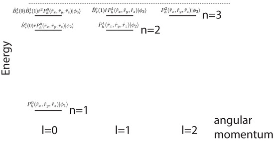 for l a nonnegative integer. Here, we have . Note that the radial momentum operator is a Hermitian operator that is conjugate to the radial coordinate operator and satisfies Equation (19).