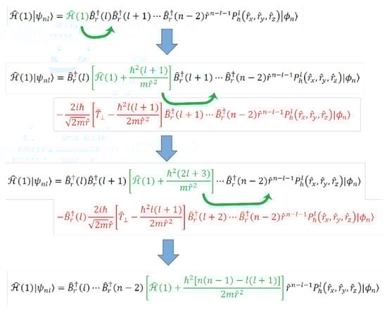 which further tells us that we must have again. Hence, and the energy eigenvalue is —the same value for every state in the chain that we can create, down to . This completes the argument that we must choose consecutive integers in the chain of operators to yield an energy eigenstate. The results are shown in Figure 1 for the first three energy multiplets. We next establish these results rigorously, deriving all of the required details. A schematic of how the calculation is structured is given in Figure 2.