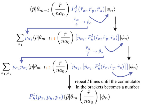 In the second line, the double commutator vanishes because the harmonic polynomial satisfies Laplace’s equation as shown in Equation (26), while the second term simplifies because the harmonic polynomial is homogeneous, as shown in Equation (25). We used the definition of the Bohr radius to simplify the final result as well.