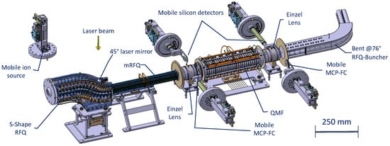 - Sels, S.; Ferrer, R.; Dockx, K.; Buitrago, C.G.; Huyse, M.; Kudryavtsev, Y.; Kraemer, S.; Raeder, S.; Van Den Bergh, P.; Van Duppen, P.; et al. Design and commissioning of an ion guide system for In-Gas Laser Ionization and Spectroscopy experiments. Nucl. Instruments Methods Phys. Res. Sect. B Beam Interact. Mater. Atoms 2020, 463, 148–153. [Google Scholar] [CrossRef]