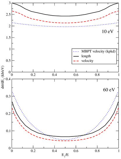 - Kheifets, A.S.; Bray, I.; Colgan, J.; Pindzola, M.S. Interference effects in L-shell atomic double photoionization. J. Phys. B At. Mol. Opt. Phys. 2011, 44, 011002. [Google Scholar] [CrossRef][Green Version]