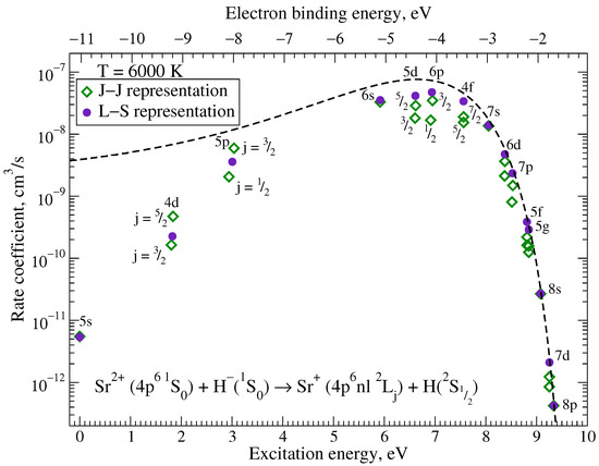 - Belyaev, A.K.; Yakovleva, S.A. Estimating Inelastic Heavy-Particle-Hydrogen Collision Data. II. Simplified Model for Ionic Collisions and Application to Barium-Hydrogen Ionic Collisions. Astron. Astrophys. 2017, 608, A33. [Google Scholar] [CrossRef]