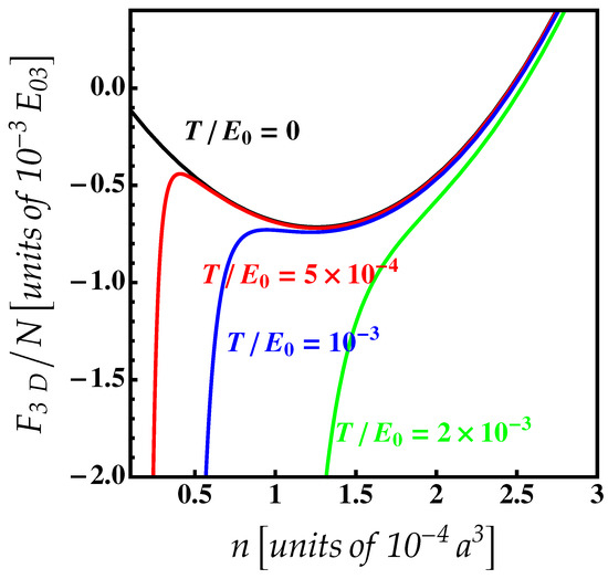 At finite temperature, the 3D free energy can be evaluated from Equation (7). Gathering quantum and thermal fluctuation contributions, we obtain [24]: