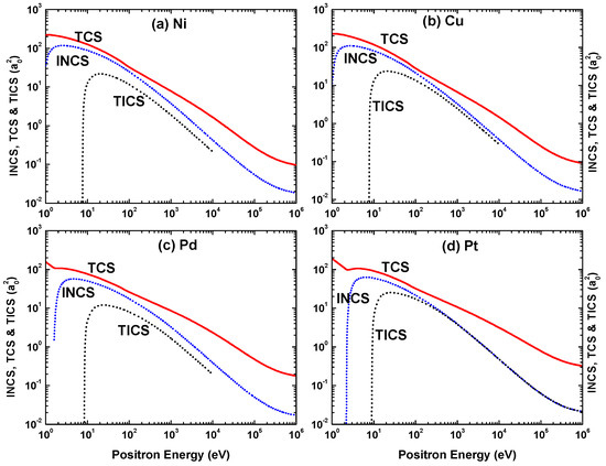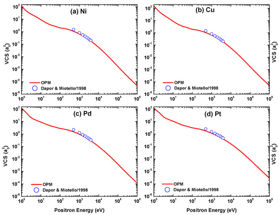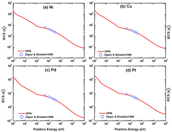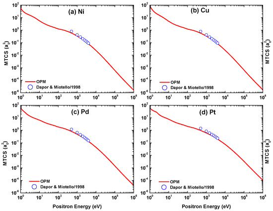 - Dapor, M.; Miotello, A. Differential, total, and transport cross sections for elastic scattering of low energy positrons by neutral atoms (Z = 1–92, E = 500–4000 eV). At. Data Nucl. Data Tables 1998, 69, 1–100. [Google Scholar] [CrossRef]
