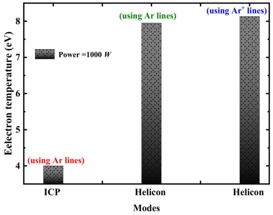 Figure 4. Variation of obtained electron temperature ( T e ) using the present CR model in different plasma operating modes at fixed power of 1000 W.