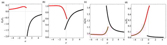 Zero-momentum quasiparticle properties of the two-dimensional polaron: (a) Energy , (b) Quasiparticle residue , (c) Effective mass and (d) Damping rate of the polaron. The red lines correspond to the repulsive branch, whereas the black lines depict the attractive polaron. System parameters are as in Figure 1.