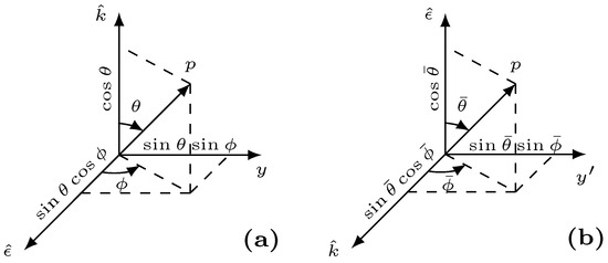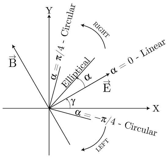 The term in (8) is expressed as . Here, the parameters p, and can be understood as follows. Consider a coordinate system XYZ, such that the Z axis is in the direction of the photon flux, as shown in Figure 2. The X axis is chosen conveniently to determine the photon polarisation. The parameter specifies the azimuthal orientation of the polarisation. When the photon polarisation vector coincides with the X axis, . The angle between the electric field vectors at their successive crests is . In case of linearly polarised light, . The probability p () of complete polarisation is referred to as the degree of polarisation of the photon. The degree of polarisation for pure linearly polarised incident photons. In Equation (8), and . Using these above relations, Equation (8) can be further reduced to