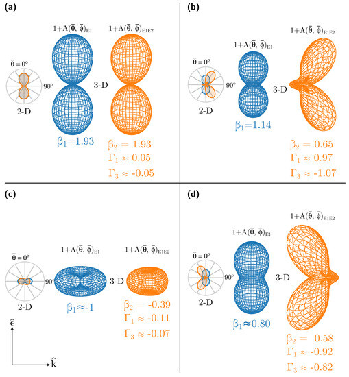 This is in agreement with Derevianko et al.’s [43] expression for while considering only the electric dipole and lowest order quadrupole interactions, which works for the closed-shell system. The above expression can also be written as , where provides the angular distribution associated with the photoelectron ejection.