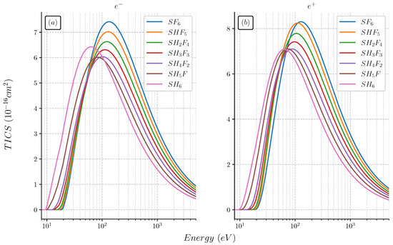 - Goswami, B.; Antony, B.; Fritzsche, S. Electron impact scattering and calculated ionization cross sections for SFx (x = 1–5) radicals. Int. J. Mass Spectrom. 2017, 417, 8–15. [Google Scholar] [CrossRef]
