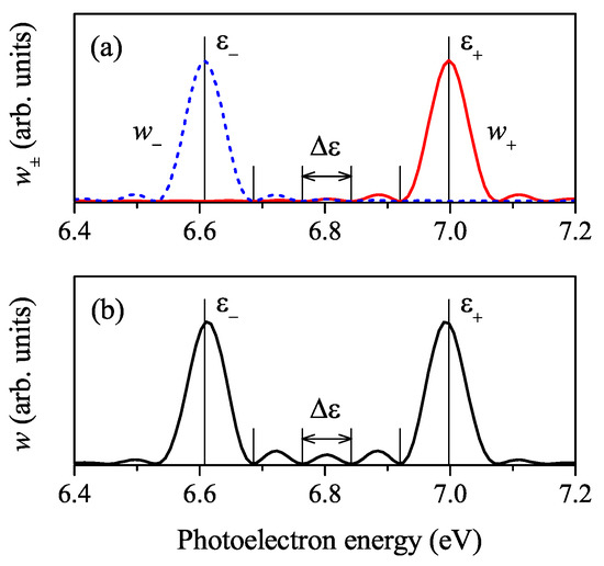 where are the phases of two oscillatory functions in the integrand. This formula gives exactly the same results as Equations (4)–(6), some of them shown in Figure 3, but it provides a deeper insight into the multiple peak structure of the PES.
