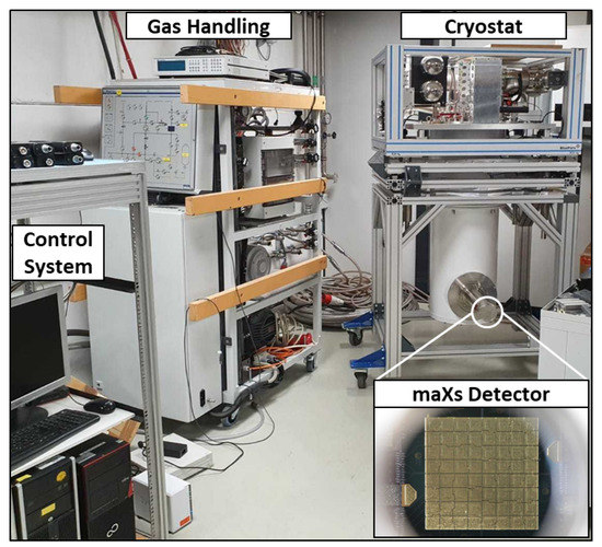 - Pfäfflein, P.; Allgeier, S.; Bernitt, S.; Fleischmann, A.; Friedrich, M.; Hahn, C.; Hengstler, D.; Herdrich, M.O.; Kalinin, A.; Kröger, F.M. Integration of maXs-type microcalorimeter detectors for high-resolution X-ray spectroscopy into the experimental environment at the CRYRING@ESR electron cooler. Phys. Scr. 2022, 97, 114005. [Google Scholar] [CrossRef]