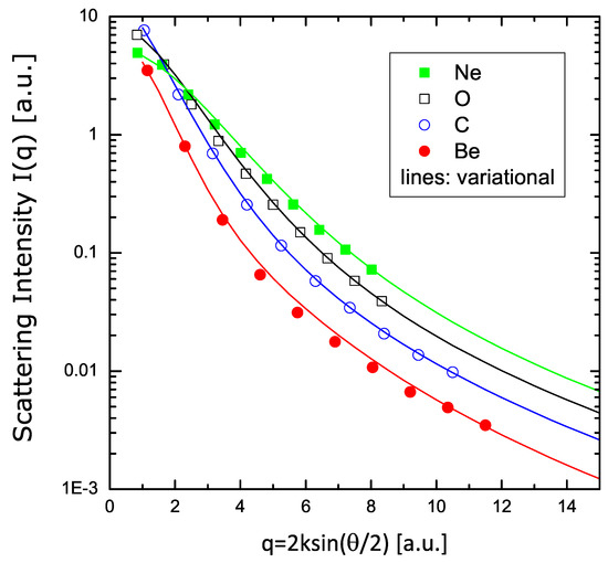 This opens the way to a number of applications in different areas of research. Two examples were considered in this work: elastic scattering of high-energy electrons by atoms and energy loss of C and Ne ions in Tokamak plasmas. In both cases, the results of the variational approach were in excellent agreement with HF calculations. These examples serve as brief illustrations of the possibilities of the variational approach to replace with a good level of accuracy some of the most sophisticated calculations made on the basis of the Hartree–Fock method. It is indeed quite remarkable that the variational formulation using only two parameters gives results that compare so well with those of the HF theory, which requires 26 parameters for each atom or ion.