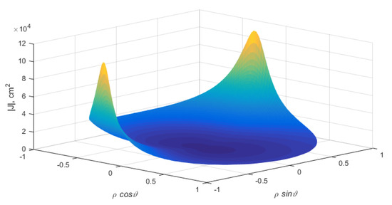 Jacobian determinant (24) calculated using the DEMO-FNS magnetohydrodynamic equilibrium data is depicted in Figure 6 as a surface plot versus the normalised poloidal radius and the poloidal angle to illustrate a typical example of the qualitative behaviour for a tokamak equilibrium where the volume derivative is