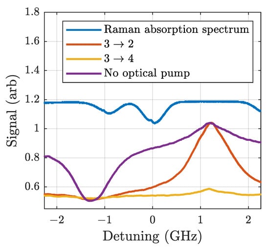 - DeSavage, S.; Gordon, K.; Clifton, E.; Davis, J.; Narducci, F. Raman resonances in arbitrary magnetic fields. J. Mod. Opt. 2011, 58, 2028–2035. [Google Scholar] [CrossRef]
