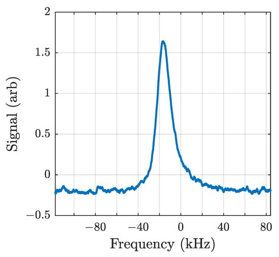 However, one drawback of using the lock-in amplifier in this manner is that the bandwidth of the entire measurement system decreases substantially. As is well known, the linewidth of a Raman transition is inversely proportional to the time the atoms are exposed to the Raman field. In our case, this time is effectively set by the transit time of the atoms through the Raman laser beam. We used a laser beam spatial width of approximately 2 mm and the most probable velocity of our atoms was measured to be m/s. Therefore, the transit time was 300 s (corresponding to a linewidth of 3 kHz). To avoid measurement broadening, the sweep rate of the Raman laser needs to be kept below 3 kHz/s. The full Raman spectrum consists of 11 peaks [34,35] whose entire frequency span depends on the applied magnetic field strength. Taking the component of the Earth’s magnetic field along the direction of propagation of the Raman field to be of the order of ∼0.1 Gauss (controllable by coils in our system) and noting that the transitions in Rb have a first-order Zeeman shift of 1 MHz/Gauss, the full Raman spectrum spans MHz. Thus, the total scan time cannot be faster than s. To obtain a decent lock-in amplifier signal, one needs to integrate for at least 100 cycles of the modulation frequency (and 1000 is better). Making a trade-off between data collection time and minimizing measurement broadening, our typical sweeps time of the Raman laser across the entire Raman spectrum lasted 10 s, although we used faster scan times for scans with lower amplitude.