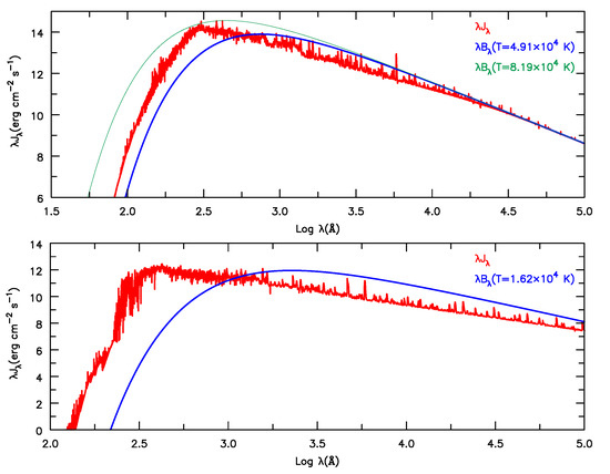 - Hubeny, I.; Hummer, D.G.; Lanz, T. NLTE model stellar atmospheres with line blanketing near the series limits. Astron. Astrophys. 1994, 282, 151–167. [Google Scholar]