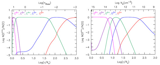 - Zsargó, J.; Hillier, D.J.; Bouret, J.C.; Lanz, T.; Leutenegger, M.A.; Cohen, D.H. On the Importance of the Interclump Medium for Superionization: O VI Formation in the Wind of ζ Puppis. Astrophys. J. 2008, 685, L149–L152. [Google Scholar] [CrossRef]