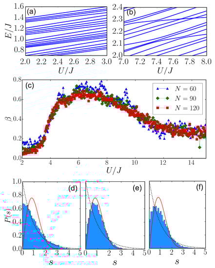 - Kollath, C.; Roux, G.; Biroli, G.; Läuchli, A.M. Statistical properties of the spectrum of the extended Bose–Hubbard model. J. Stat. Mech. Theory Exp. 2010, 2010, P08011. [Google Scholar] [CrossRef]