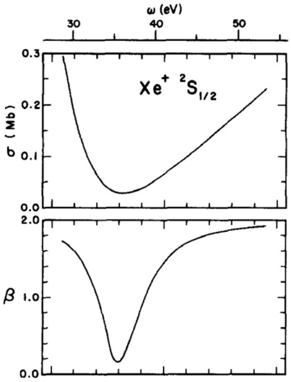 These effects are particularly enhanced near Cooper minima, where the singlet cross section becomes quite small. As an example, in Figure 1, the situation for Xe 5s, calculated using the fully relativistic RRPA, is shown [13]. It is seen that the cross section exhibits a Cooper minimum and, in that energy region, βns is seen to deviate from the value of 2 and to be strongly energy-dependent. Parenthetically, note that this behavior has also been validated in the laboratory [13].