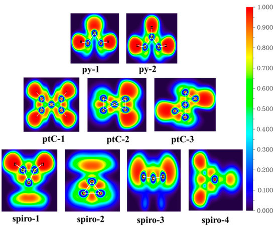 Color-filled electron localization function (ELF) plots of all nine isomers calculated at the ωB97XD/6-311+G(d,p) level of theory.