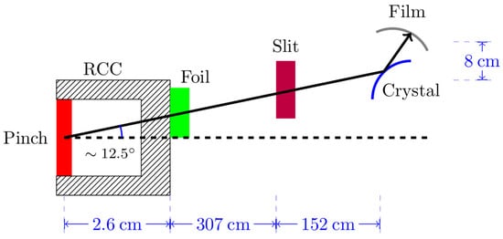 Schematic of experiment configuration and geometry, showing relative positions of pinch, return current can, target foil, and time-integrated crystal spectrometer. Reprinted from ref. [9], Copyright 2022, with permission from Elsevier.