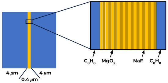 Each target was fabricated to have 4 m of parylene (CH) tamper on both the front and back sides of 10 repeated double-deposition layers of sodium fluoride/magnesium-oxide foil. The NaF and MgO deposition layers were interleaved within the foil to enhance plasma homogeneity upon expansion [17] (see Figure 2). Foil elements have been chosen with similar atomic numbers (), to minimize the ionization energy required to observe similar charge-state configurations. The oxygen was inadvertently introduced as an impurity during foil fabrication.