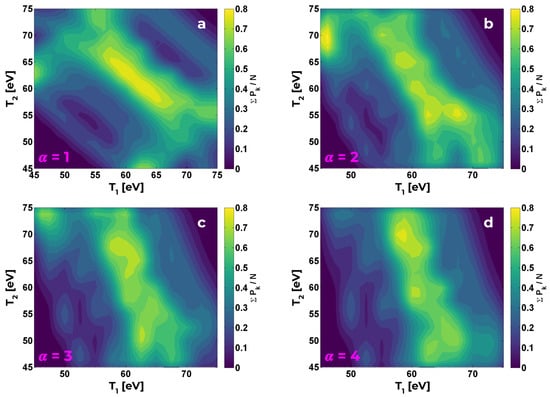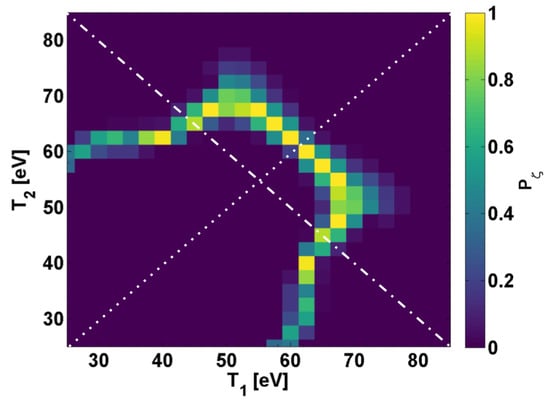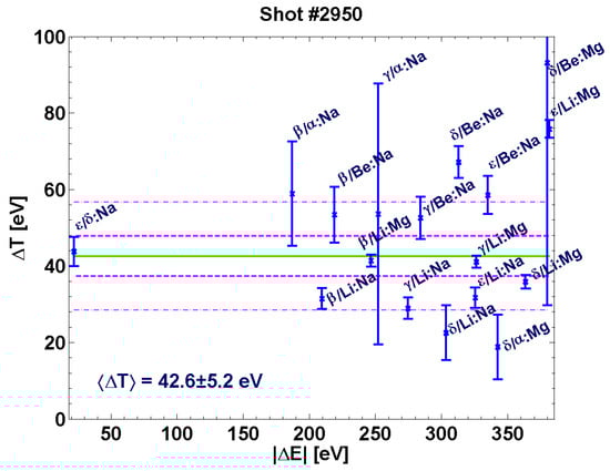 Notably, we recognize agreement between the weighted means as inferred by isoelectronic and inter-stage ratios, which is contrary to the results for temperature in refs. [9,10]. However, the calculated value of (≈43 eV) stands in disagreement with that obtained via analysis; notice that we may rewrite (5) as , where , and