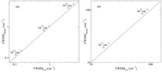 - Calisti, A.; Mossé, C.; Ferri, S.; Talin, B.; Rosmej, F.; Bureyeva, L.A.; Lisitsa, V.S. Dynamic Stark broadening as the Dicke narrowing effect. Phys. Rev. E 2010, 81, 016406. [Google Scholar] [CrossRef]