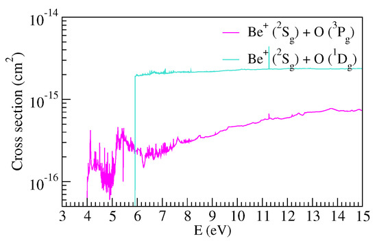The lowest two dissociation channels are the BeO, the Be(S) + O(P) (threshold 4 eV) and the Be(S) + O(D) (threshold 5.91 eV) channels, which we subsequently refer to as the first and second dissociation channels, respectively. The X and the 1 states dissociated to the Be(S) + O(P), while the and the 1 dissociate to the next higher one, that is, the Be(S) + O(D) channel. We have approximately calculated the dissociation cross-sections by assuming that excitation to the states approaching a particular dissociation channel above the dissociation threshold of that channel results in dissociation. This approximation has proved to give a reasonable estimate of the dissociation cross-sections in many of our earlier studies (see [16] for example).