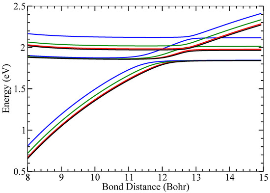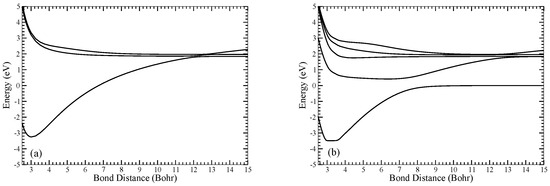 The adiabatic potential energy curves of the relevant electronic states were calculated using the MRCI (Multi-Reference Configuration Interaction) method with the orbitals generated from the CASSCF calculations. The same active space was used in the MRCI and single and double excitations out of the reference configurations were included. The and adiabatic potential energy curves calculated using the MRCI with the aug-cc-pV5Z basis set are displayed in Figure 1.