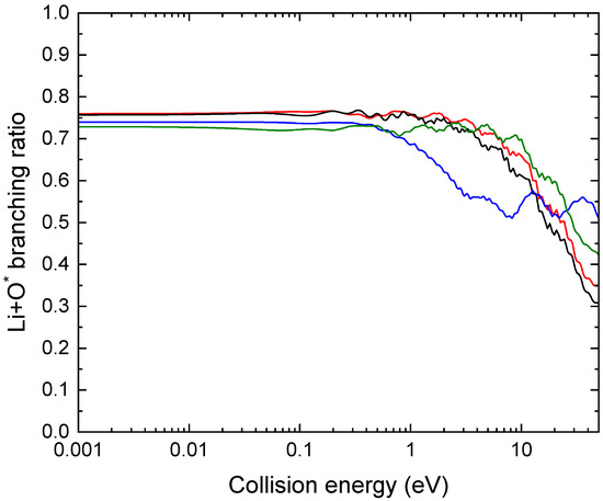 At higher collision energies (>17 eV), the Li* + O channel started to dominate, as seen in Figure 6.